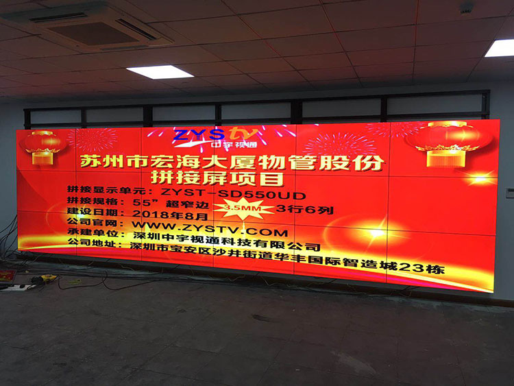 蘇州市宏海大廈物管股份55寸超窄邊拼接屏項(xiàng)目