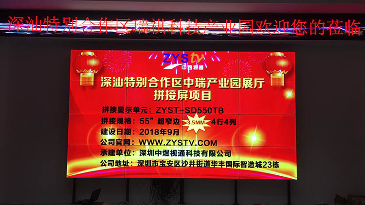 深汕特別合作區(qū)中瑞產(chǎn)業(yè)園展廳55寸3.5mm拼縫液晶拼接屏項目,安裝調(diào)試完成并且順利驗收,中宇視通科技全體員工從深圳發(fā)來賀電!
