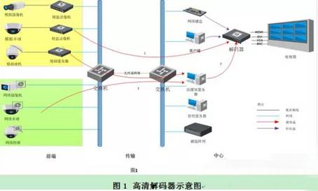 一個完整的高清監(jiān)控系統(tǒng),必須涵蓋前端、傳輸、后端以及中心各個環(huán)節(jié),缺一不可。其中,前端負(fù)責(zé)高清圖像的采集,傳輸負(fù)責(zé)高清圖像的輸送,后端負(fù)責(zé)高清圖像的存儲,中心負(fù)責(zé)高清圖像的顯示和業(yè)務(wù)的管理??梢哉f,一套高清監(jiān)控系統(tǒng),真正給用戶體現(xiàn)直觀價值的就在于中心的圖像高清顯示,而這離不開高清解碼器。