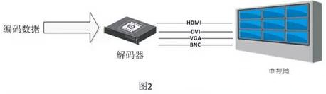 高清解碼器的主要作用,在于接收前端高清編碼圖像并解碼,然后通過自身的各種視頻 輸出接口,如HDMI/DVI/VGA/BNC,輸出顯示到電視墻上。它與前端攝像機正好是一個正反過程,前端攝像機輸入圖像,進行編碼;解碼器進行解碼,輸出圖像。針對項目大小和中心電視墻的規(guī)模,高清解碼器又有兩種主要的應(yīng)用: