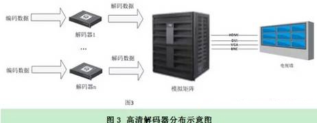對于中大型規(guī)模電視墻,顯示控制設(shè)備一般為模擬矩陣或數(shù)字矩陣,那么高清解碼器主要負(fù)責(zé)接收網(wǎng)絡(luò)編碼數(shù)據(jù)并解碼,然后將解碼后的數(shù)據(jù)作為矩陣的輸入。