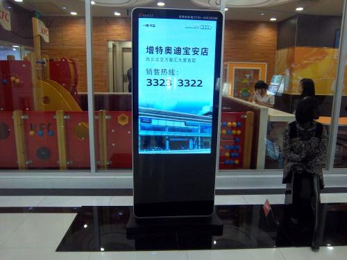 1.落地式廣告機(jī)靈活性較高,怎么理解,就是說,只要地面空間場(chǎng)地不受限制,就可以隨意挪動(dòng)擺放;