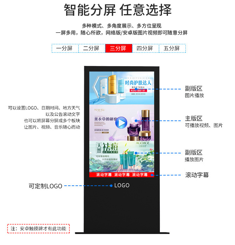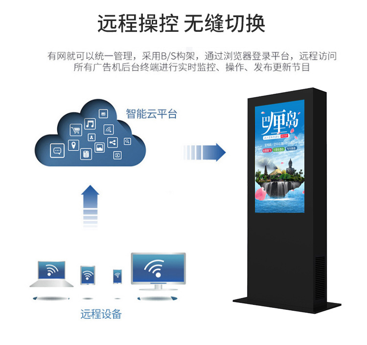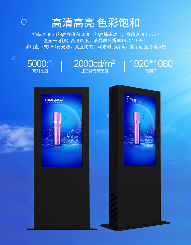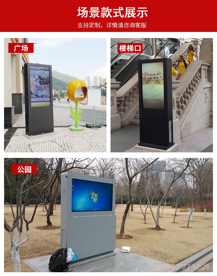 戶外雙面廣告機適用于旅游景區(qū)、公園、廣告?zhèn)髅?、社區(qū)、公交站臺、高速收費站、政府機關(guān)、校園等戶外場合使用,我們的戶外廣告機支持定制外觀、硬件、接口等,廠家直銷,價格優(yōu)惠,歡迎來電咨詢:18566661105